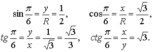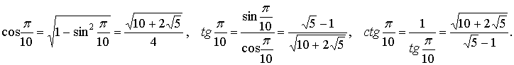 и т. д. Так же определяются значения тригонометрических функций аргументов