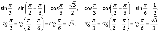 , то воспользовавшись формулами приведения и известными уже значениями тригонометрических функций аргумента