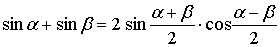 (Преобразование суммы и разности синусов в произведение)(Преобразование суммы и разности косинусов в произведение)