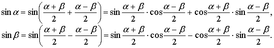 Представляя аргументы α и β в виде