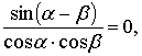 причем cos α ≠ 0 и cos β ≠ 0. Последнее справедливо лишь в случае α - β = π n.