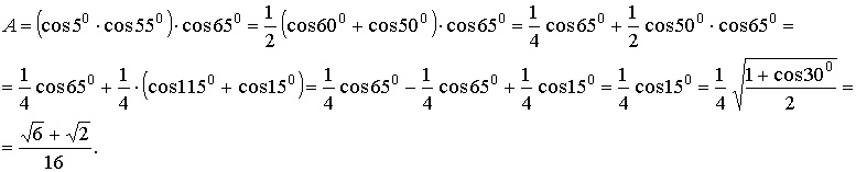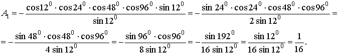 Если аргументы, стоящие под знаком косинусов, не образуют геометрическую прогрессию, то следует разложить произведение тригонометрических функций в сумму, заменяя при этом известные значения функций числами. Иногда это приводит к цели.