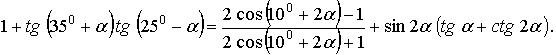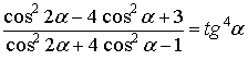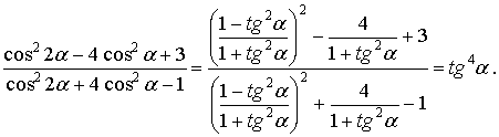 - Преобразуем левую часть данного выражения. Выражая cos2 2α и cos2 α через tg α, имеем