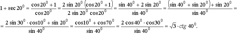 - Преобразуем левую часть данного выражения так, чтобы получить угол 40°, стоящий в "неподвижной части":