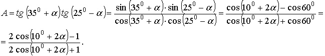 Рассмотрим ряд задач на доказательство наперед заданных тождеств и равенств и укажем некоторые приемы, полезные при этих доказательствах. Заметим, что и здесь каждый раз необходимо указать множество допустимых значений углов и параметров, входящих в данные выражения. В противном случае решение неполноценно.Часто при доказательстве тождества преобразуют одну более сложную часть к другой более простой, которая в данном случае является, так сказать, "неподвижной". При этом преобразовании нужно выбирать такие формулы, которые приводили бы к функциям и аргументам, стоящим в "неподвижной части".