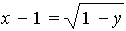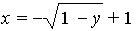 , откуда замечаем, что х − 1 ≥ 0, т.е. х ≥ 1 (так как арифметический корень не может принимать отрицательных значений). Возведя в квадрат, получаем (х − 1)2 = 1 − y и окончательно y = − (х − 1)2 + 1. Графиком этой функции будет парабола, изображенная на (рисунке), а графиком искомой функции будет правая ветвь этой параболы, для которой х ≥ 1. Очевидно, левая ветвь параболы будет графиком функции