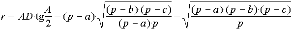 Отсюда следует, что AD = p - а. Используя формулу (10), имеем