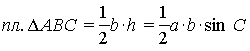 I. Площадь треугольника равна произведению двух его сторон на синус угла, заключенного между ними: