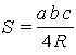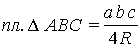 III. Площадь треугольника равна произведению всех его сторон, деленному на учетверенный радиус описанной окружности, т. е.