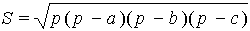 Теорема 3 (формула Герона). Площадь треугольника со сторонами а, b, с и полупериметром р равна выражению