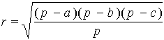 З а м е ч а н и е. Формулы (15) и (16) могут быть использованы для вычисления радиусов вписанной и описанной окружностей, если известны стороны треугольника. (Тогда его площадь можно вычислить по формуле Герона.)