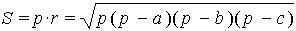 II. Площадь треугольника равна произведению его полупериметра на радиус вписанной окружности: