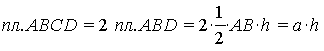 Доказательство. Диагональ BD делит данный параллелограмм с основанием а и высотой h на два равных треугольника ABD и DBC. Следовательно,