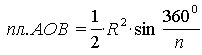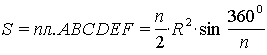 Следствие. Площадь правильного многоугольника равна половине произведения числа сторон многоугольника на квадрат радиуса описанной окружности и на