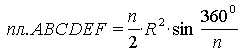Теорема 4. Площадь правильного n - угольника равна его полупериметру pn, умноженному на радиус вписанной окружности: