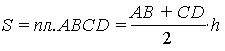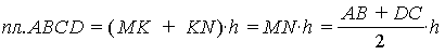 Теорема 3. Площадь трапеции равна произведению ее средней линии на высоту, т. е.