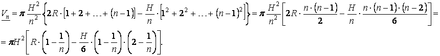 и радиусами оснований r1; r2, ...,rn - 1, rn = BAn, содержит данный шаровой сегмент. Его объем