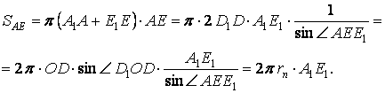 Мы использовали равенство углов АЕЕ1 и D1OD. Вывод остается верным для любого звена взятой ломаной. Тогда площадь боковой поверхности, образованной вращением всей ломаной,