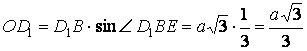 . Так как D1C1 = D1D, то основание высоты лежит на биссектрисе угла В.Рассмотрим треугольник BD1E, в котором D1O является высотой. В нем нам известны все стороны: