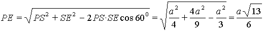 PSE = 60°, РS = a/2, SE = SC − EC = 2a/3. По теореме косинусов