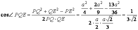 Теперь в треугольнике PEQ нам известны все три стороны. Снова используя теорему косинусов, находим