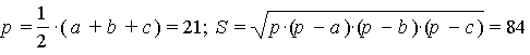 Задача 1. В основании пирамиды лежит треугольник со сторонами 13, 14, 15. Боковые грани пирамиды наклонены к плоскости основания под равными углами в 75°. Определить радиус шара, касающегося пирамиды в точках, лежащих на сторонах основания.