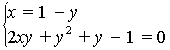 Сложив первое уравнение со вторым, получим уравнение, в котором член с у2 отсутствует: Зх2 + 2xy - 2у - 3 = 0, или 2{х - 1) у + 3 (х2- 1) = 0. Очевидно, этому уравнению удовлетворяет х = 1. Соответствующие значения