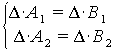 Действительно, умножая обе части первого уравнения системы S на m1, а второго на m2 и складывая, получим первое уравнение системы S1. Умножая эти уравнения на n1 и n2 и складывая, получим второе уравнение системы S1. Из этого следует, что система S1 является следствием системы S. Обратно, умножая первое уравнение системы S1 на n2, а второе на - m2 и складывая, получим уравнение Δ·А1 = Δ·В1. Умножая первое уравнение системы S1 на - n1 а второе на m1 и складывая, получим уравнение Δ·А2 = Δ·B2. Следовательно, система является следствием системы S1, но, очевидно, система S является в свою очередь, следствием системы S2 (если сократить обе части уравнений системы S2 на Δ ≠ 0).