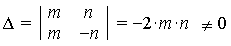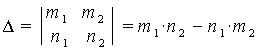 Выражение Δ обычно записывают в виде и называют определителем, составленным из элементов m1, m2, n1, n2. Следовательно, по определению