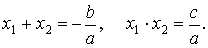Из формулы (12) вытекает следующая зависимость между корнями и коэффициентами квадратного уравнения (формулы Виета для квадратного уравнения):