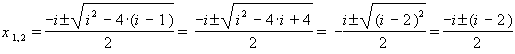 Пример 2. Решить уравнение x ² + i·x + i - 1 = 0.