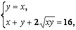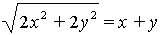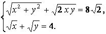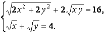 , которое в силу условия х ≥ 0, у ≥ 0 равносильно уравнению 2 х2 + 2 у2 = (х + у)2 или х2 - 2 х у + у2 = 0, откуда следует, что у = х. Таким образом, данная система равносильна системе