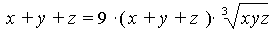 , которое равносильно совокупности двух уравнений x + y + z = 0 и