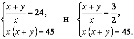 получим относительно t уравнение t ² + t - 56 = 0, откуда t = 7 (t = - 8 – не годится). Следовательно, второе уравнение системы равносильно уравнению х (х + у) = 45. Таким образом, искомая система равносильна совокупности двух рациональных систем
