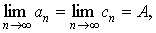 Теорема II. Если члены последовательности bn, начиная с некоторого номера N, заключены между соответствующими членами an и cn двух других последовательностей, т. е.