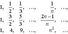 Замечание. К монотонным последовательностям относят также неубывающие (аn≤ аn+1) и невозрастающие последовательности (аn ≥ аn+1).