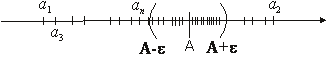 Предел последовательности. Определение. Число А называется пределом последовательности а1, а2, , аn, , если для любого положительного числа ε можно подобрать такое натуральное число N, что для всех значений n > N выполняется неравенство