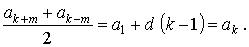 ak+m + ak-m = 2 a1 + d (2 k - 2) = 2 [a1 + d (k - 1)],