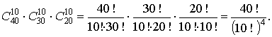 способами. Оставшиеся 10 человек составят четвертую группу. Итак, число всех различных способов составления четырех групп из 40 человек равно