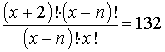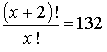 где x + 2 ≥ 0, х - n ≥ 0 и x ≥ О. Сокращая дробь на х! [(x + 2)! = х!·(х + 1)·(х + 2)], получаем квадратное уравнение х2 + З х - 130 = 0, равносильное данному, если х - натуральное. Решая это уравнение, находим, что x = 10 (корень х = - 13 < 0 отбрасывается).