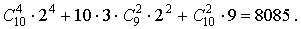 [(1 + 2 x) + З x2]10 = (1 + 2 x)10 + 10·З x2·(1 + 2 x)9 + 45·9·x4·(1 + 2 x)8 +