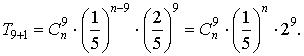 при k > 9, то отсюда следует, что при k < 9 коэффициенты членов возрастают, с ростом k при k > 9 они убывают. Поэтому коэффициент 10-го члена от начала – наибольший.