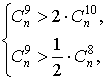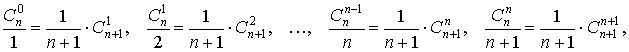 - Используя формулы (6), (7) и (8), (10) и свойства биномиальных коэффициентов, удается получить ряд соотношений между числами