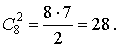 Любая пара данных чисел образует только одну правильную дробь. Всего же различных пар, в которых первый элемент меньше второго, будет столько, сколько существует сочетаний из 8 элементов по 2, т. е.
