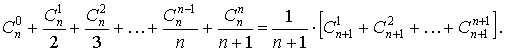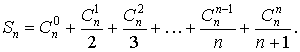. По свойству биномиальных коэффициентов она равна 2n + 1 - 1 и