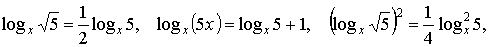 y2 - 6 y + 5 + 0. Корни этого уравнения у1 = 1, у2 = 5. Возвращаясь к неизвестному х, находимlogx 5 = 1, х1 = 5, logx 5 = 5, х5 = 5, В некоторых случаях перед заменой целесообразно привести логарифмы, входящие в уравнение, к одному основанию.