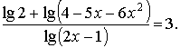 lg 2 (4 - 5 x - 6 x2) = lg (2 x - 1)3 (2 x - 1 ≠ 1), а последнее равносильно алгебраическому уравнению2 (4 - 5 x - 6 x2) = (2 x - 1)3 при условий, что 4 - 5 х - 6 x2 > 0 и 2 х - 1 > 0 и 2 х - 1 ≠ 1.