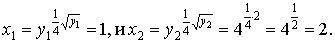 Поэтому последнее уравнение равносильно совокупности двух уравнений у = 1 и ¼y = 1. Итак, y1 = 1, y2 = 4. Решая уравнение