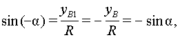 - Четность и нечетность. Для любых двух аргументов α и - α, отличающихся только знаком, соответствующие им подвижные радиусы ОВ и OВ1 симметричны относительно оси абсцисс. Поэтому хв = хв1, yв = - yв1, и