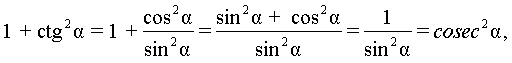 1 + ctg²α = cosec²α (α ≠ π k). (8) Здесь и в дальнейшем k = 0, ±1, ±2, …